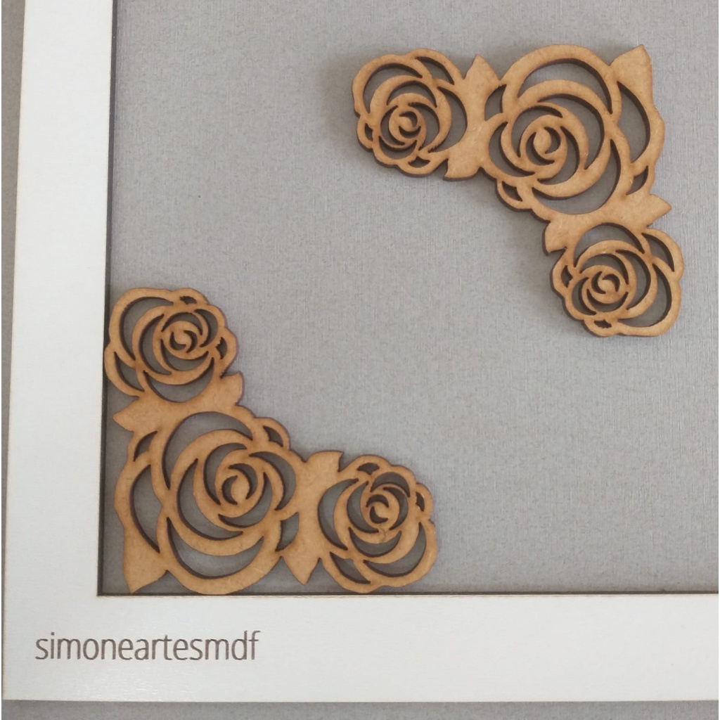 ROSA FLOR APLIQUE CANTONEIRA MDF - 7,5 x 7,5 cm - 4 / 8 UNIDADES