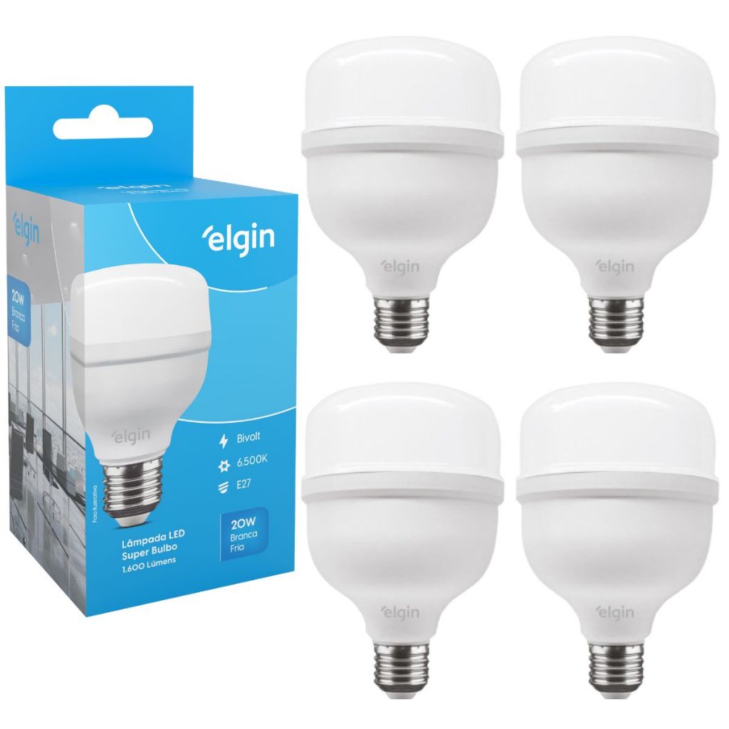 Kit 4 Lâmpadas Super Bulbo Alta Potência Led 20w 6500k - Elgin