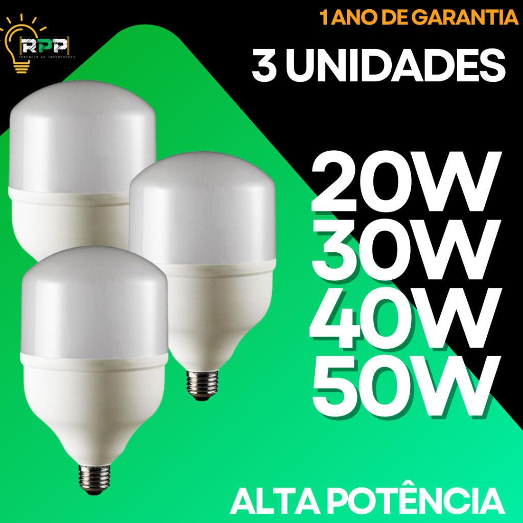Kit 03 Lâmpadas Led Super Bulbo Alta Potência 20w 30w 40w 50w 75w 100w Avant 01 ANO DE GARÂNTIA