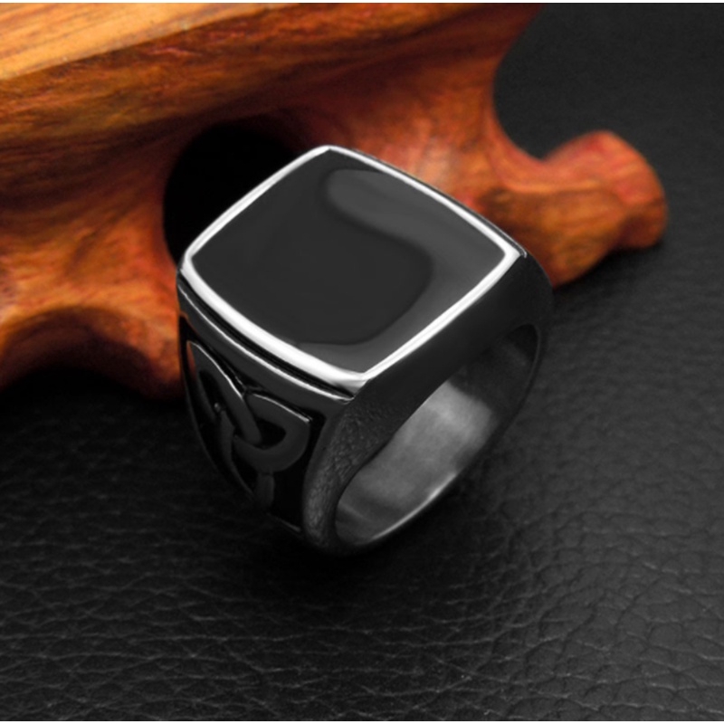 SEUSUK Anel Quadrado Preto Vintage Honorável Com Estilo Trendsetter De Encantos Antigos