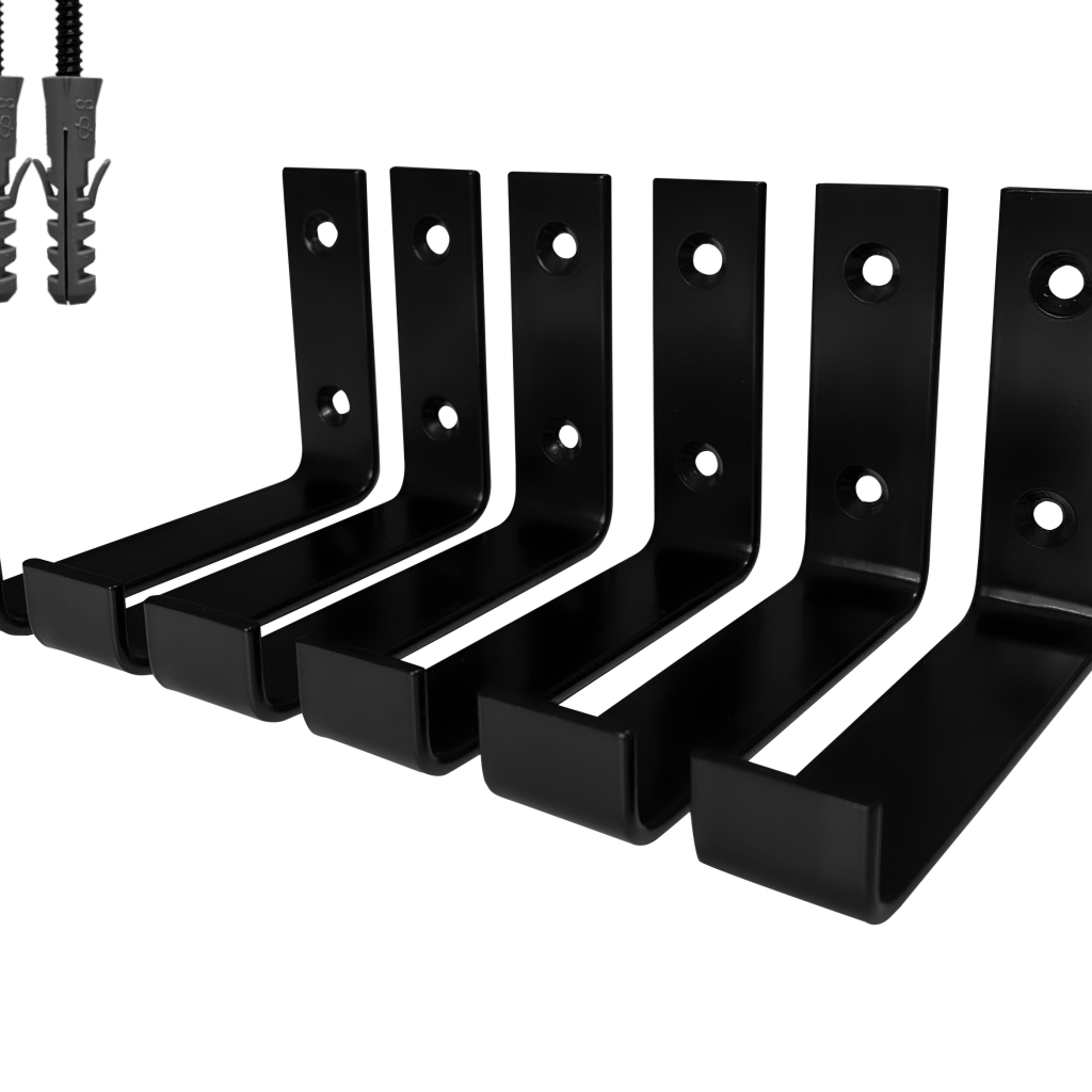 kit 6 Suportes Mão Francesa para Prateleira de 20 cm Branca ou Preta + kit Instalação