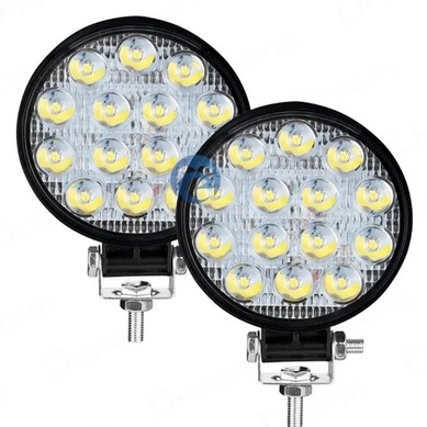 Kit 2 Farol Milha 14 LEDs 42w 12v/24v Redondo Off-road 6000k