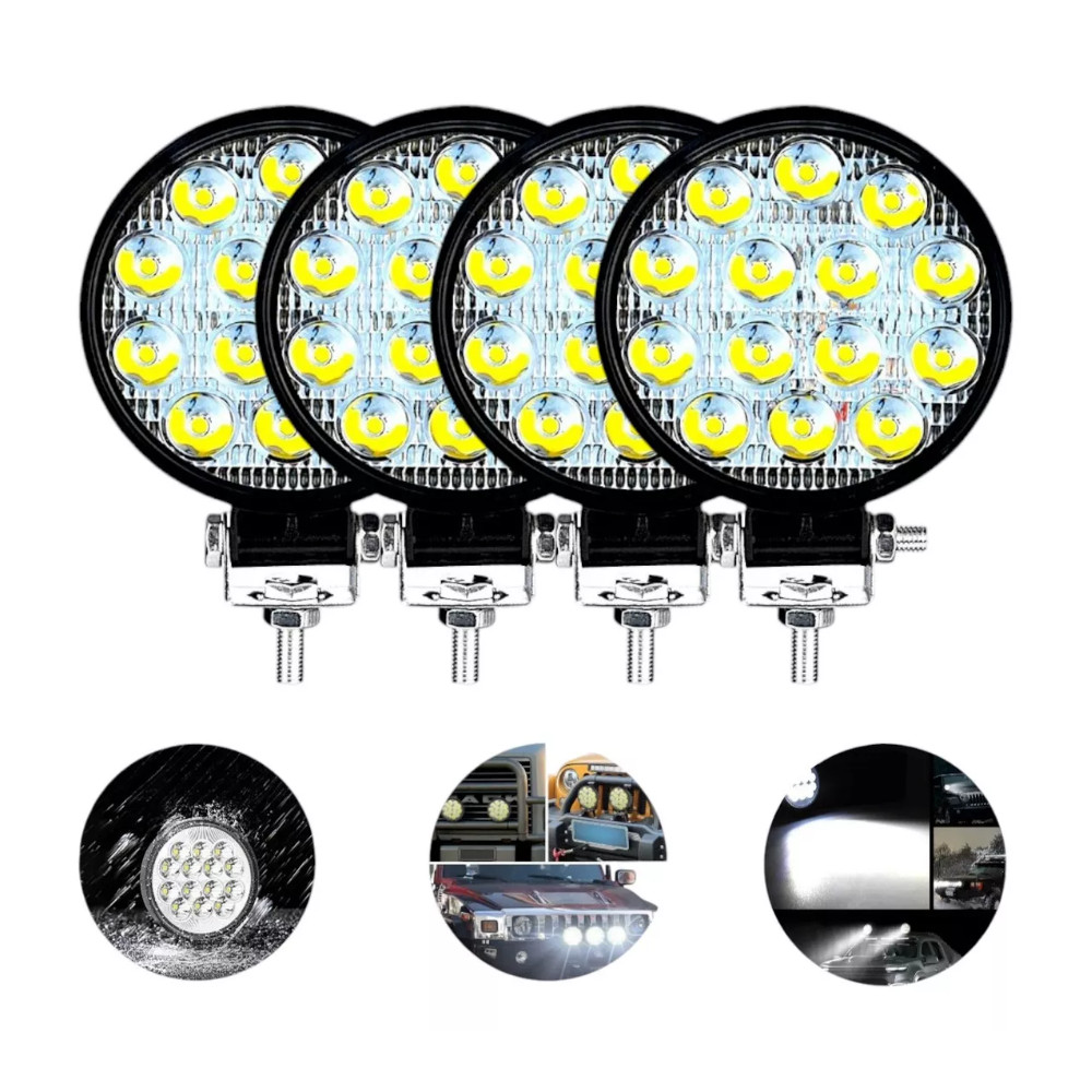 Kit 4 Farol LED Redondo Milha 42W 14 LED Off-Road 12V/24V