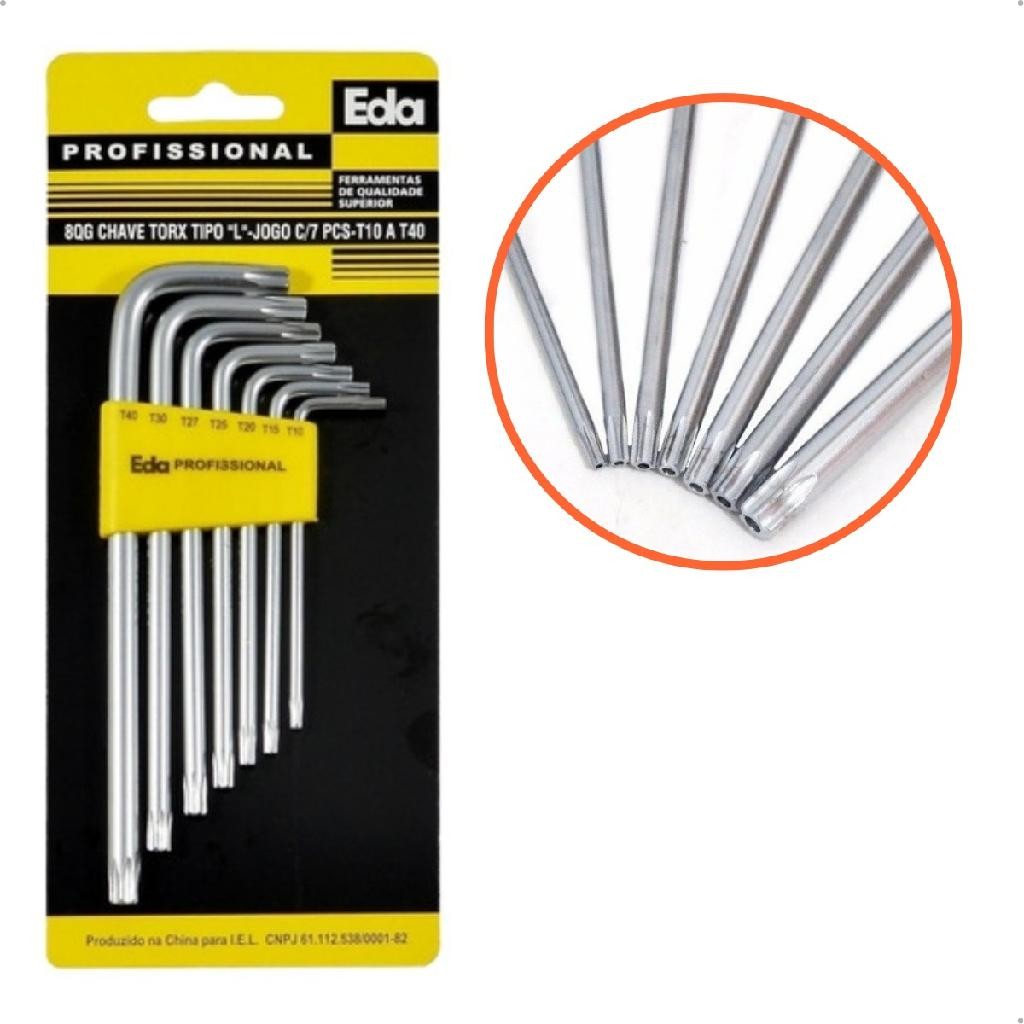 Chave Torx Kit Ferramentas Tipo L 7 Peças Com Furo Torques - EDA
