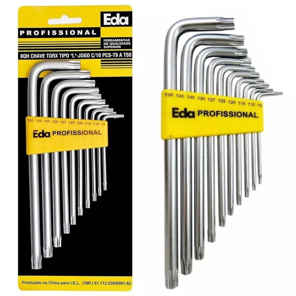 Jogo Kit De Chave Torque Torx Tipo L 10 Peças Com Furo Guia Profissional - EDA