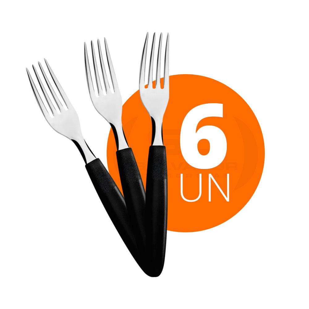 KIT - 6 Garfos de Mesa Ipanema Lâmina em Aço Inox Cabo Preto GPTOP - Tramontina