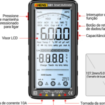 Voltímetro Multímetro Digital Profissional Recarregável Inteligente Aneng 681 nfe 6000 Uni Automátic