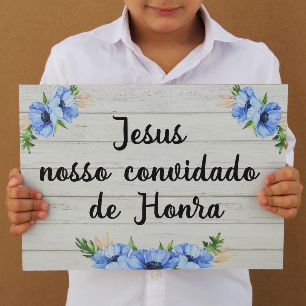 kit 2 Placa de Casamento em Mdf 3mm plaquinha casamento Lá vem a noiva e Jesus nosso convidade de honra