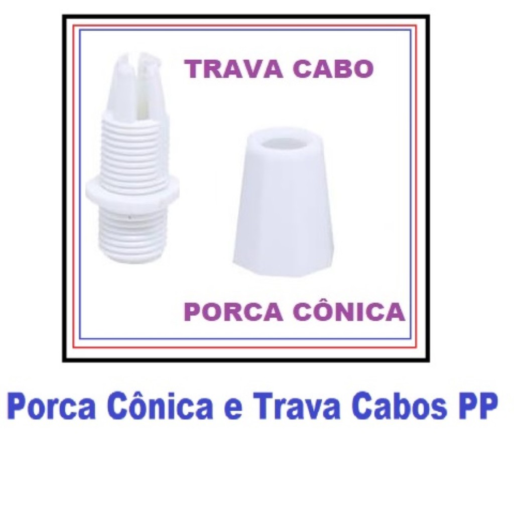 Kit 10 Porcas Cônicas M10 e Niples Trava cabos M10 Branco Ideal Para Cabo PP 2x0,50mm