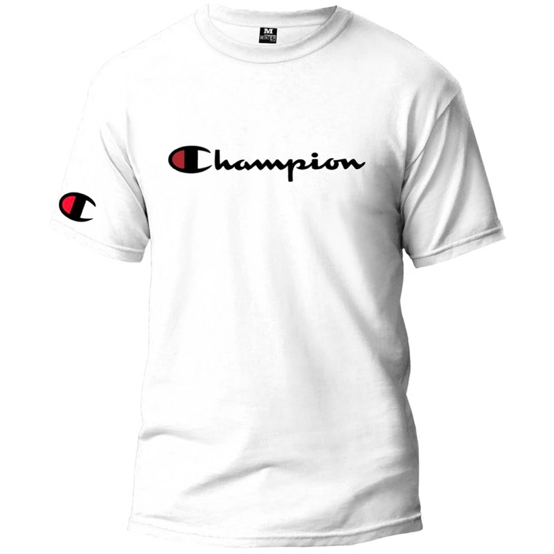 Camiseta Estampado Champion Escrito Básica Malha Poliester Masculina e Feminina Manga Curte