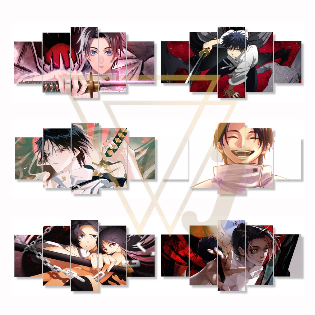 Quadro Decorativo 5 peças Mosaico Animes Goku Boku no Hero Izuku Midoriya One Piece Luffy Dragon Ball Super jujutsu kaisen Gojo Satoru demon slayer kimetsu no yaiba tanjiro kamado 7