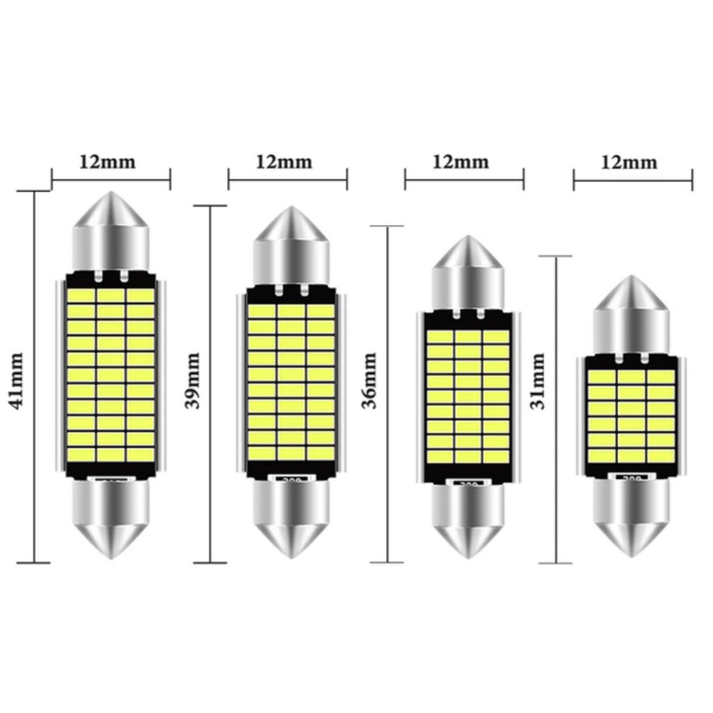 Kit 2 Lampadas Led Torpedo Canbus Leds Smd 31mm 36mm 39mm 41mm Super Brilho