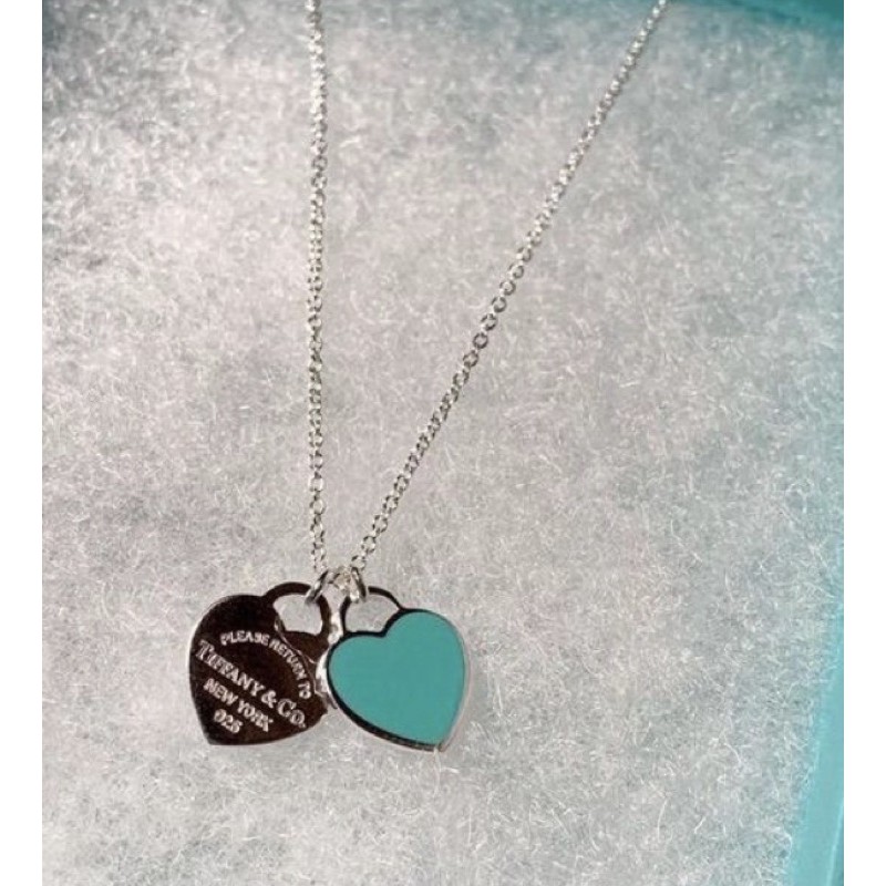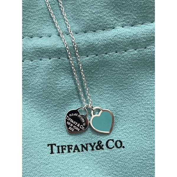 Colar TIFFANY &CO azul de PRATA 925 LEGÍTIMA DE LEI mini coração duplo double heart