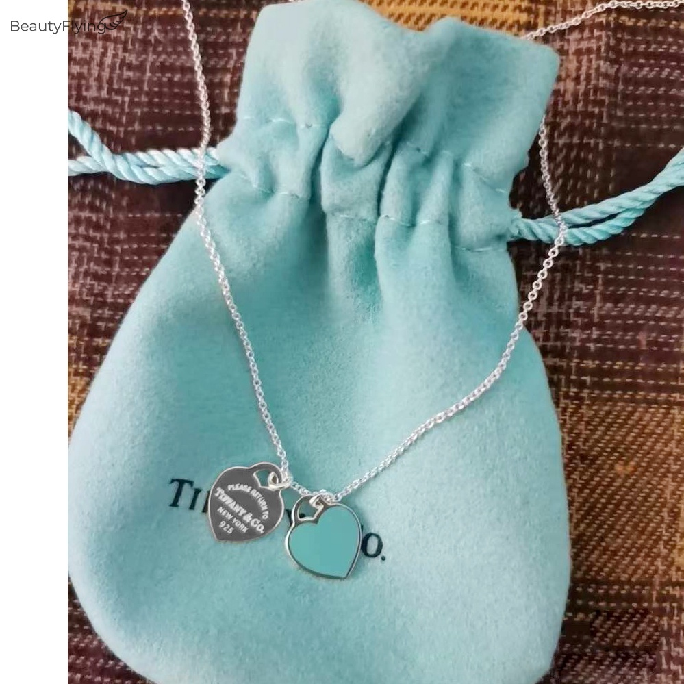 Definir Colar E Pulseira T&Co Coração Azul 925 Pulseiras Corrente De Prata Com Saco De Veludo