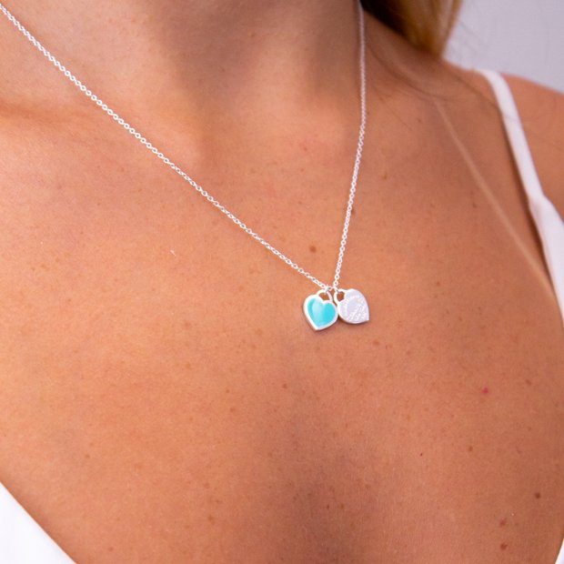 Colar Coração Duplo Azul Tiffany + Caixinha e Saquinho de Veludo