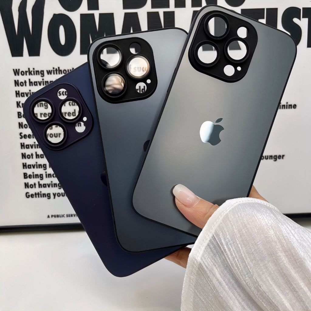 Luxo Titânio Acrílico Caso De Telefone Para iPhone 16 15 14 13 12 11 Pro Max Plus Com Lente Filme Proteção Capa Dura 11 Completa
