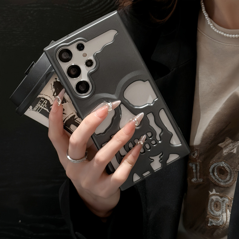 Luxo Fosco Fibra De Carbono Padrão Oco Crânio Caso De Telefone Duro Para Samsung Galaxy S24 S23 Ultra Plus Chapeamento À