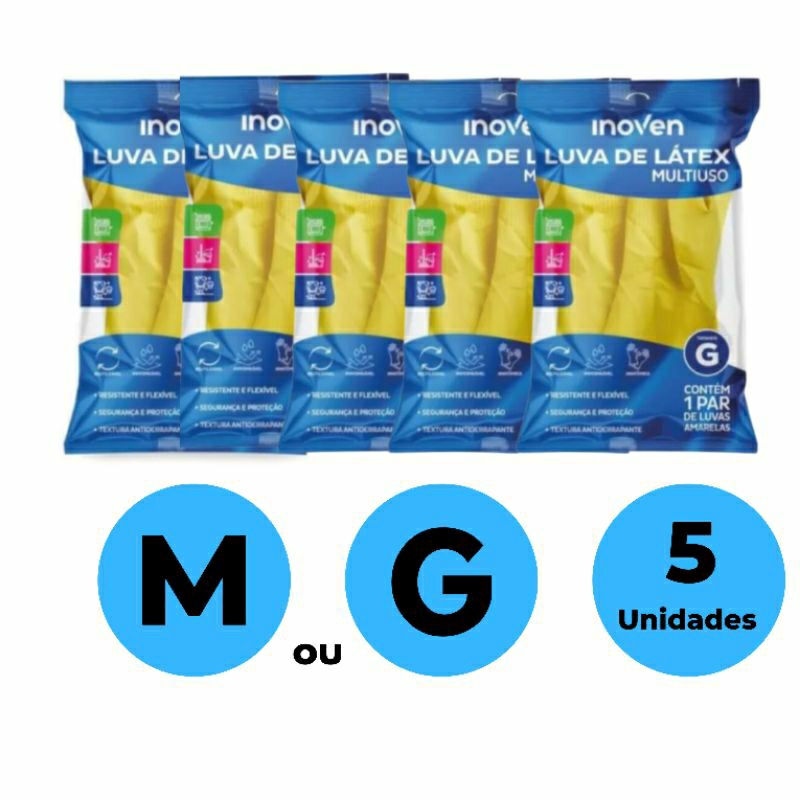 Kit 5 Luvas Amarela Látex Multiuso Limpeza M ou G