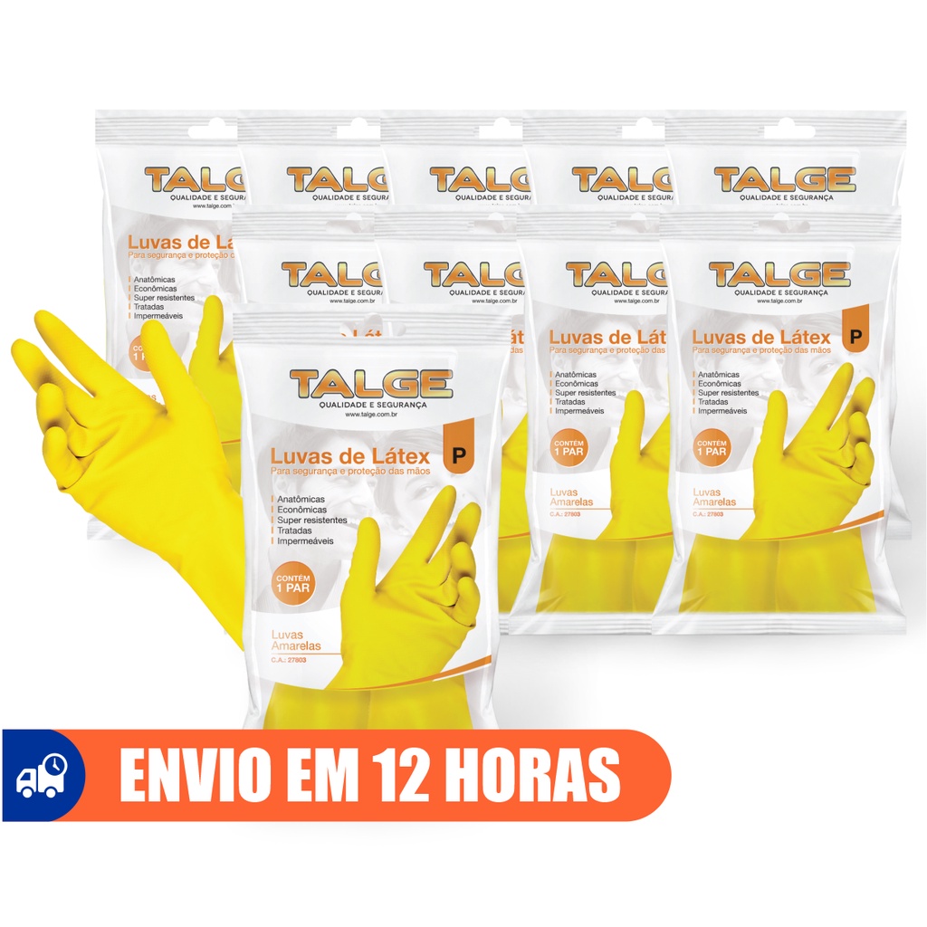 Luva de Limpeza Amarela Látex Kit 10 Pares Antiderrapante Talge