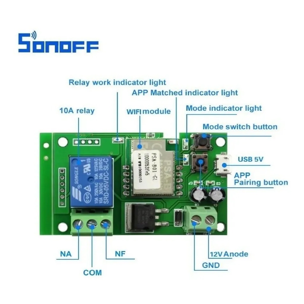 Sonoff Wifi Inteligente Módulo Relé Dc7v-12v-32v Função Pulso E Travado Automação Portão eletronico