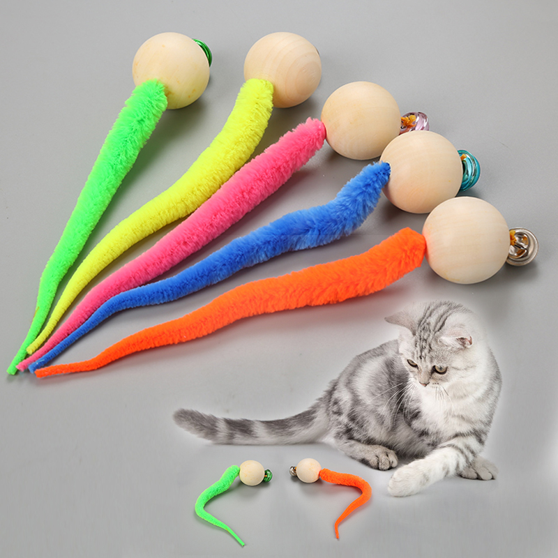 Bola de Madeira de Brinquedo de Gato com Sino de Cauda de Lagarta Suprimentos Interativos para Animais de Estimação