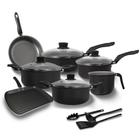Jogo de Panelas 10 Peças Preto Antiaderente com Tampa de Vidro e Grill
