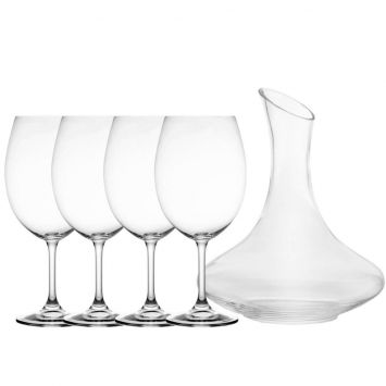 Decanter de Vinho Vidro 1,5L e 4 Taças de Cristal Bohemia Sommelier 580ml para Degustação