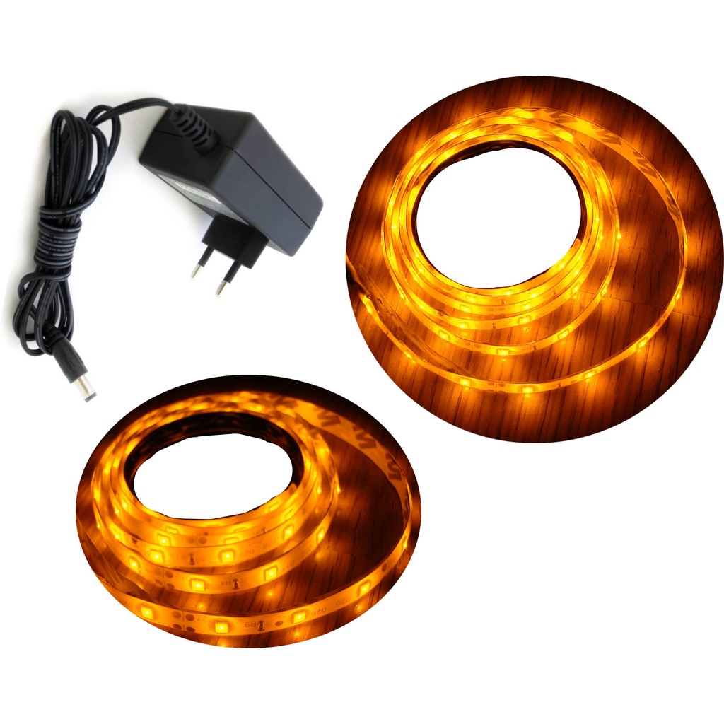 Fita Led 3528 Cor Ambar De 2 Metros Proteção de Silicone Com Fonte Bivolt