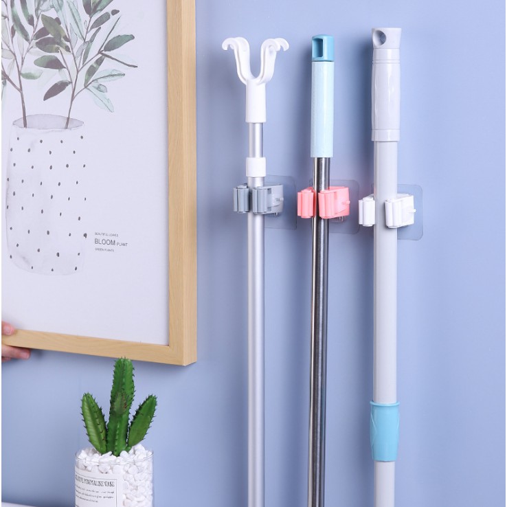Kit 3 Suporte Vassoura e Rodo Para Parede Gancho Adesivo Cozinha Organizador Pendurar Mop Porta Vassoura Casa Limpeza