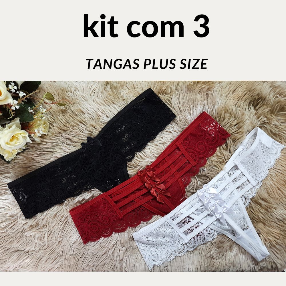 Calcinha Tanga PLUS SIZE KIT 3 fio dental de renda 3-tiras lingerie