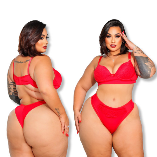 Kit 4 Conjuntos Plus Size Fio Dental Calcinha e Suitã Renda
