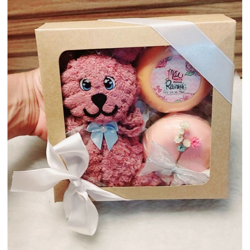 Lembrancinha para o dia das mães ursinho feito de toalha e 2 sabonete natura todo dia 90g.