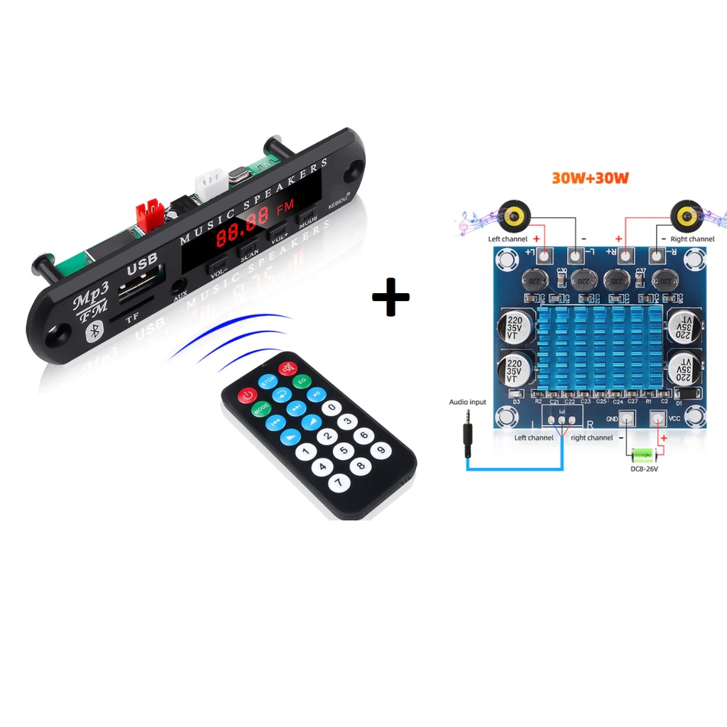 Kit decodificador Bluetooth mp3 + placa de áudio amplificador 30w+ 30w para Caixa Ativa USB FM