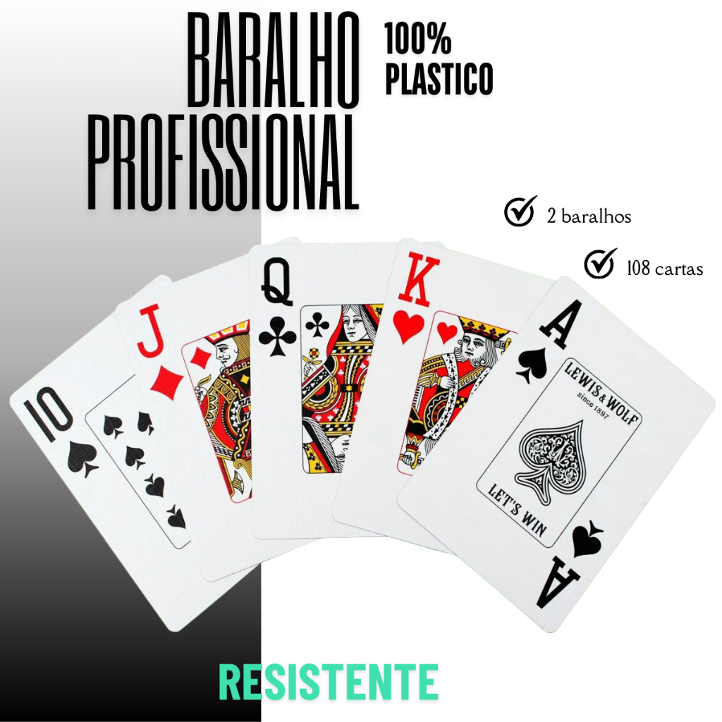 KIT Baralho Plástico Prova De água Qualidade Profissional Resistente Lavável 108 Cartas Poker Truco