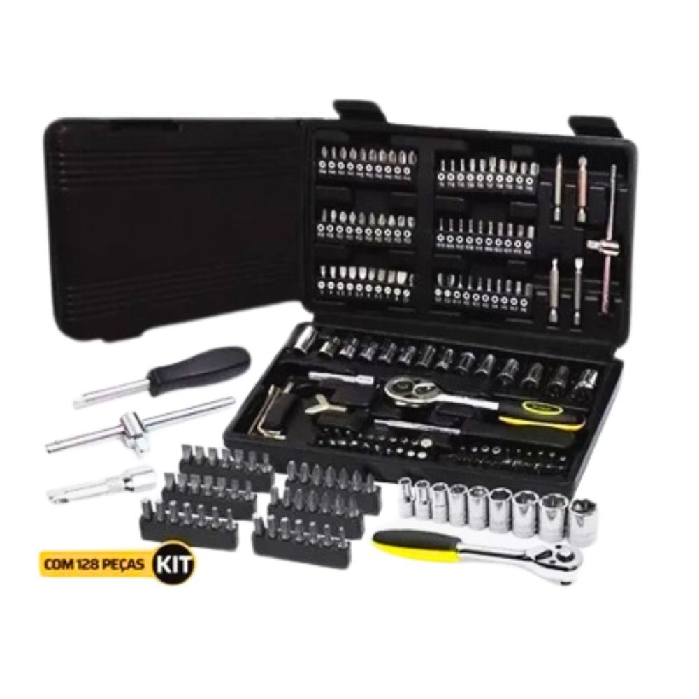 Jogo de Ferramentas 128 Peças Chave Catraca Soquetes Bits Maleta Kit Completo Multiuso Titanium