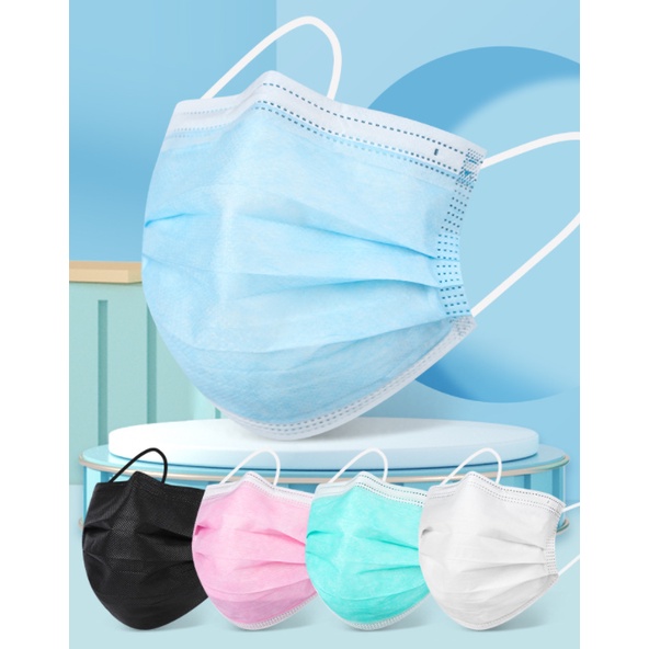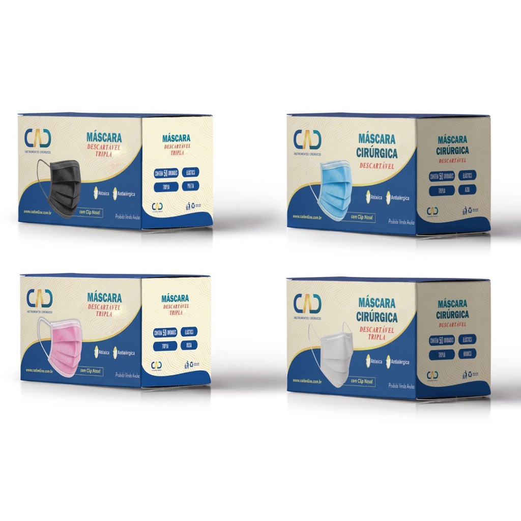 KIT Máscara Descartável De Proteção Facial Tripla Preto Azul Rosa Branca 50 100 150 Unidades