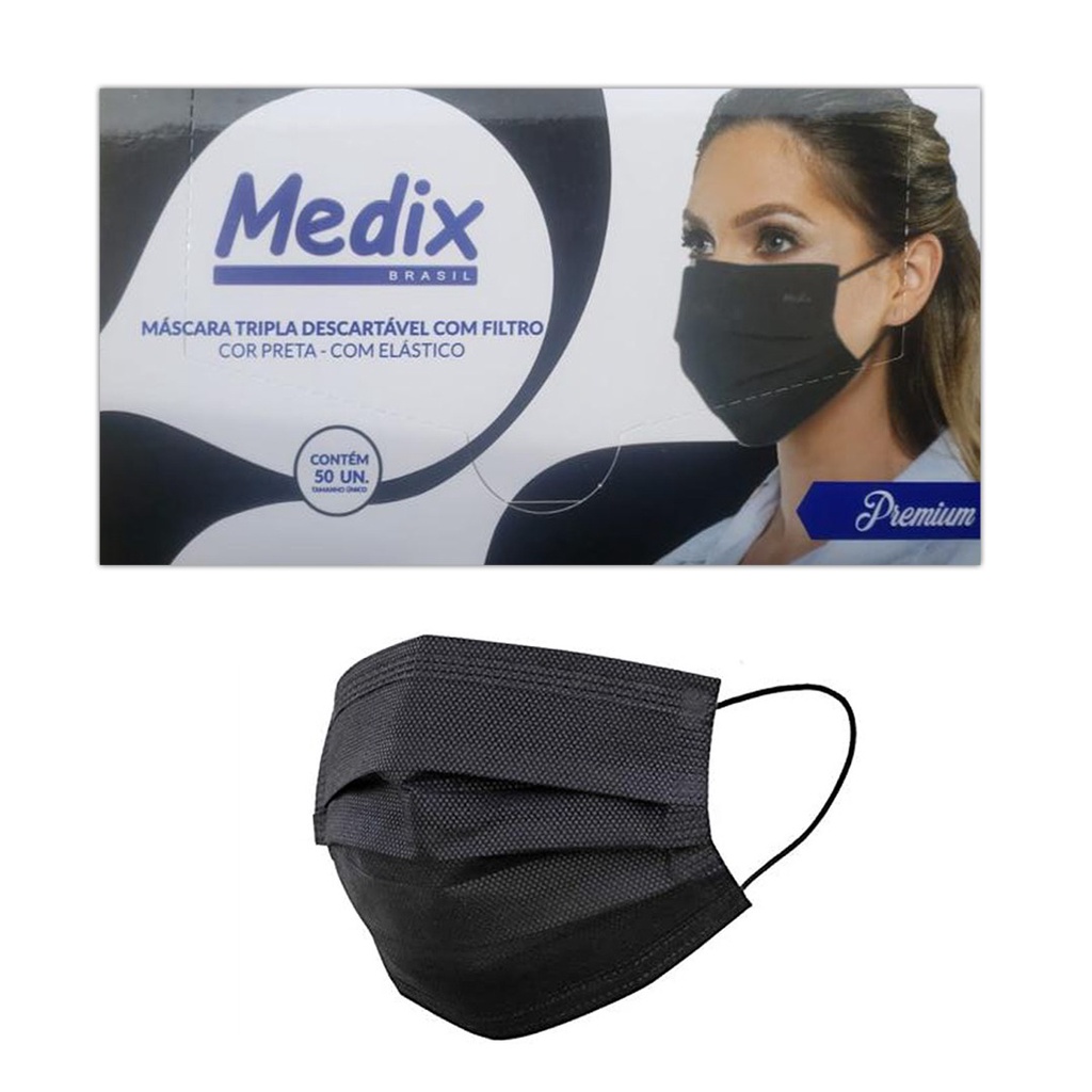 mascara preta descartavel medix caixa com 50 unidades tripla camada