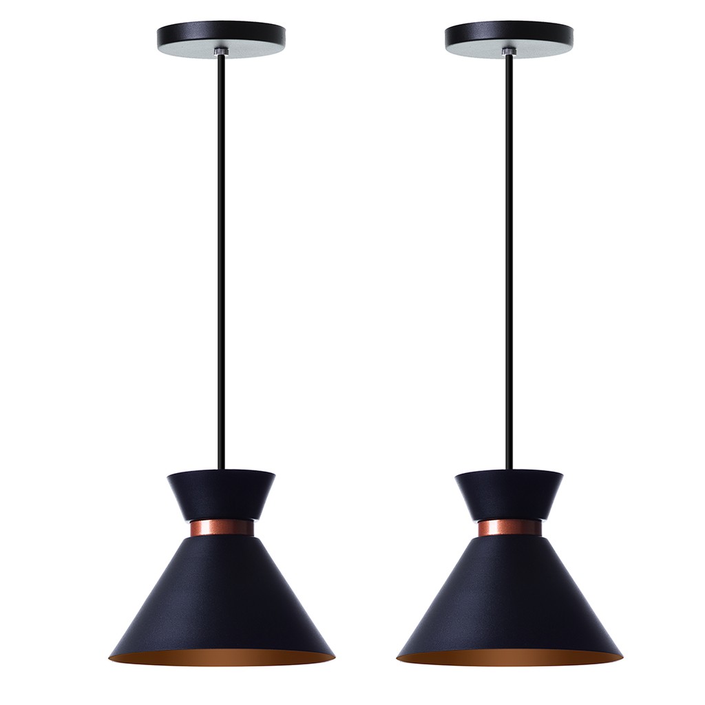 Kit 3 Pendente Luminaria Teto Estilo Meia Lua Preto com cobre 40 cm Aluminio Decorações Elegante Para sua casa em Geral