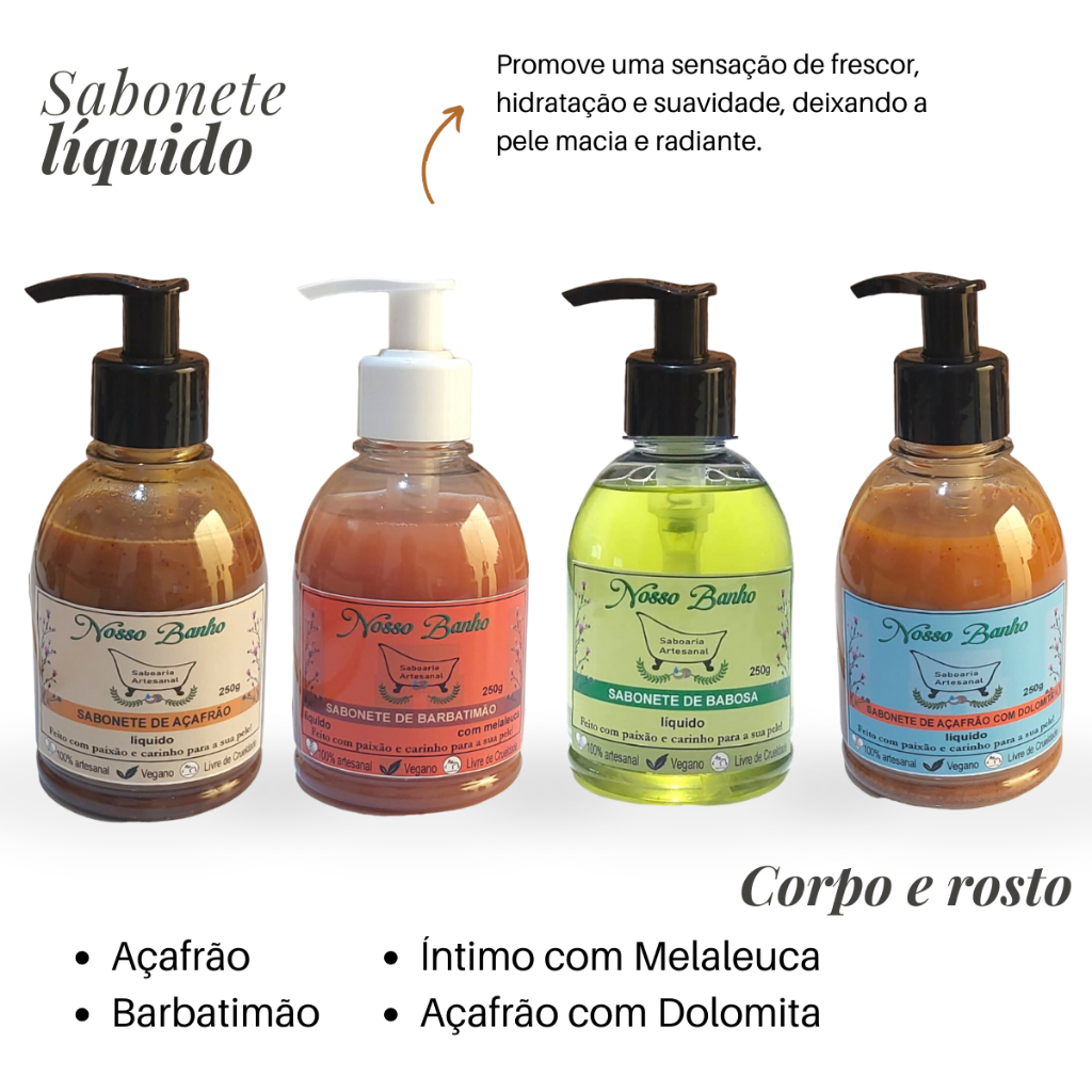 Sabonete Líquido Artesanal Vegano Natural 250g Corpo e Rosto