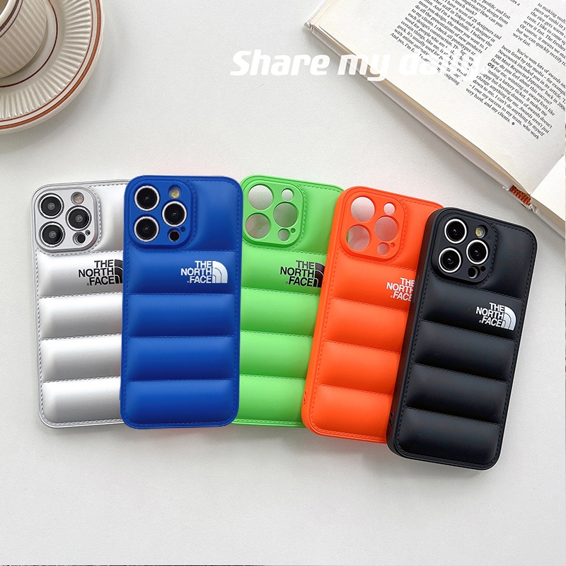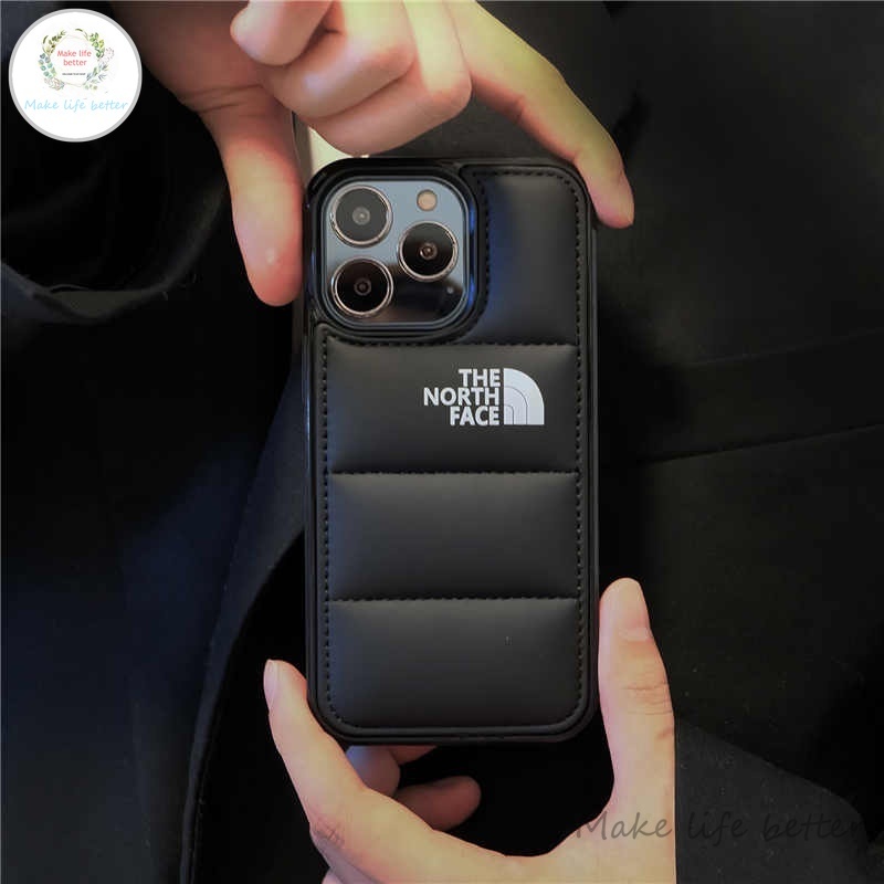 The North Face 【 A Norte 】 Jaqueta De Penas De Fibra Embutida 3D Capa Compatível Com IPhone 15 Pro Max 14 15 Plus 11 12 13 14 7plus 8plus X XR XS Celular Macia Anti-Queda