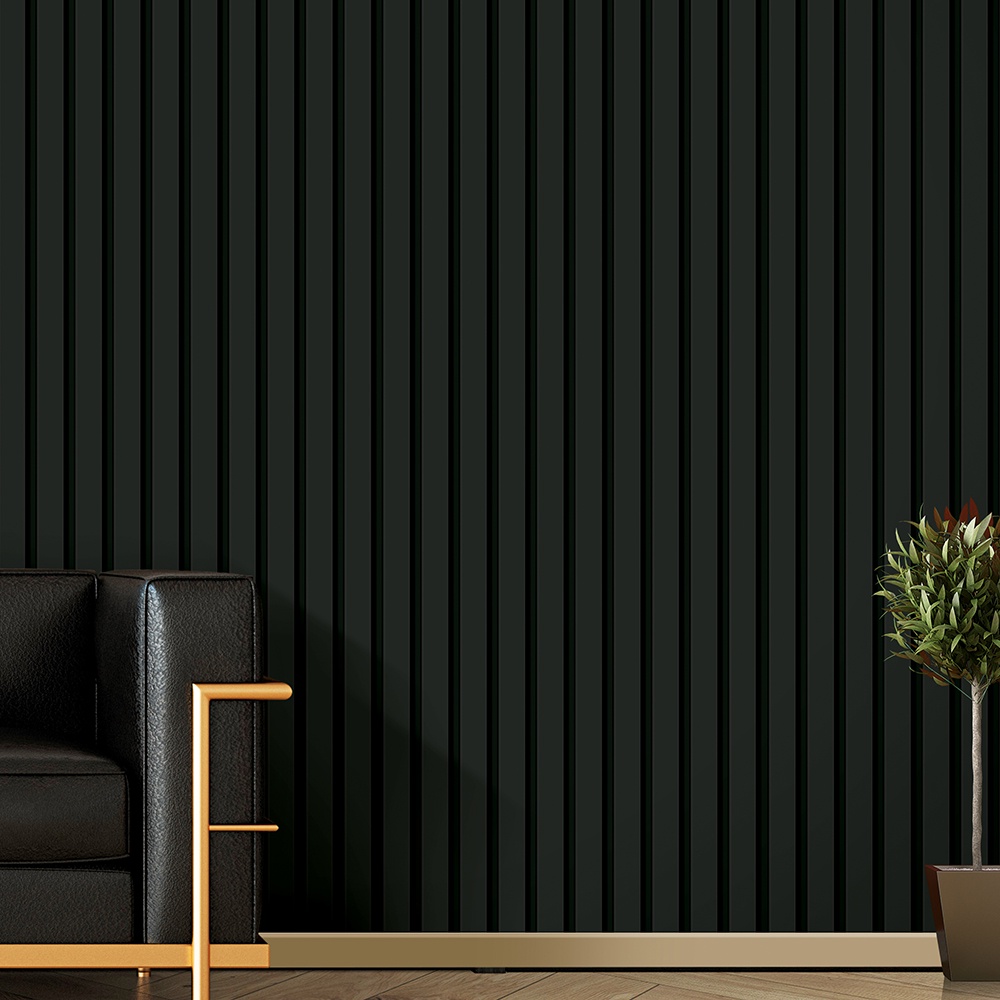 Papel De Parede Adesivo Ripas De Madeira Preta Efeito Laqueado Ripado Vinílico Lavável Para Sala Quarto Escritório