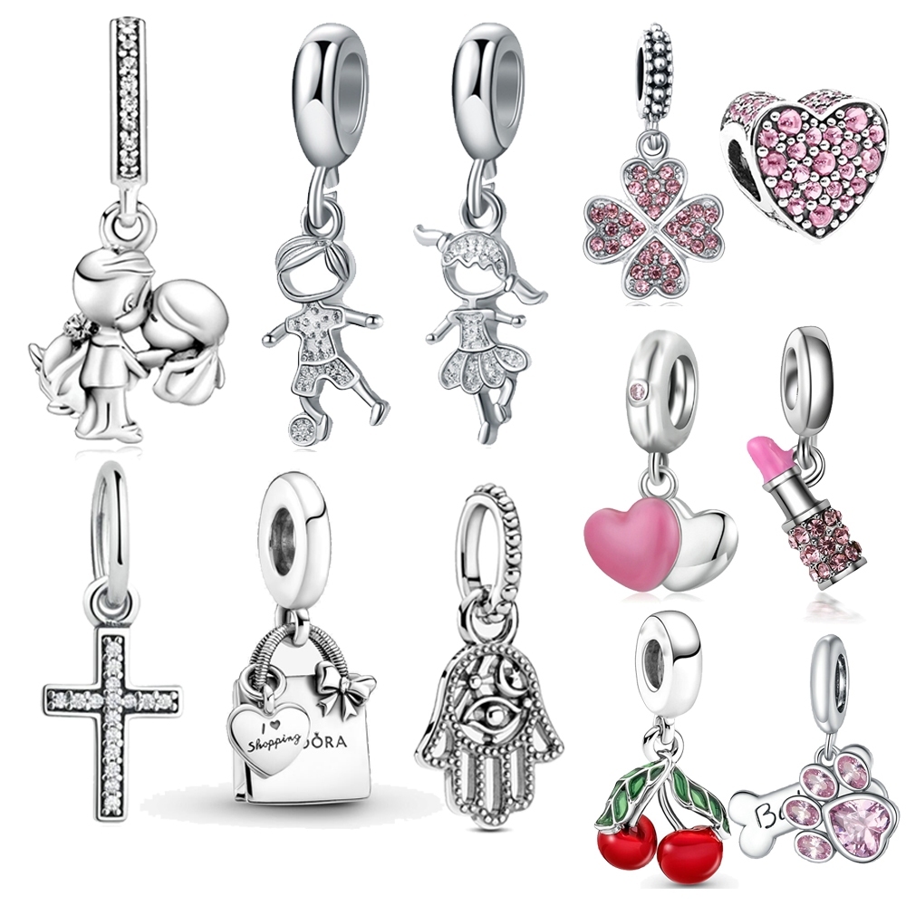 Berloque De Prata 925 Encanta Casamento Rapaz Rapariga Para Pingente Pulseira Amuletos Coração Diamante Bijuteria