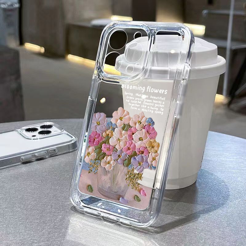 Arte Padrão De Flor Pintada A Óleo Estojo Para Xiaomi 13T Pro Mi 11 Lite 5G NE 13 12 12T 11T 14 Poco X5 X3 X4 F5 X6 M6 F3 Flores Florescentes Espaço Floral Transparente Capa Macia