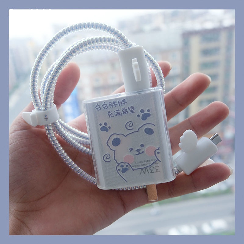 4pçs Protetor De Carregador Simples De Urso Fofo Para Xiaomi 33W/55W/67W/120W Capa De Proteção/Cabo De Carregamento