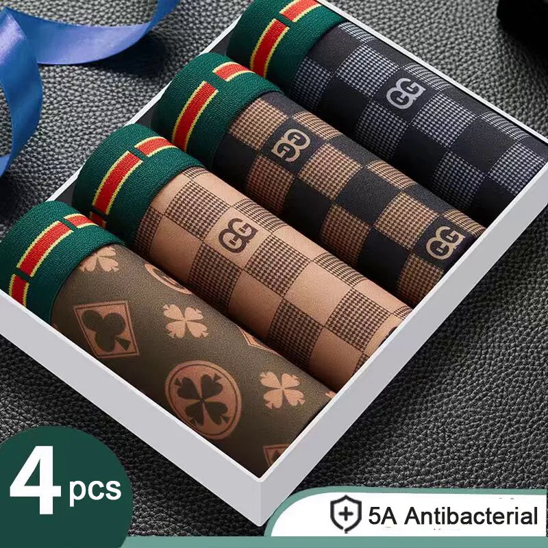 4pçs / Pacote Cueca Boxer Bermuda Masculina Roupa Íntima De Malha Flexível Fresca Tamanho Grande