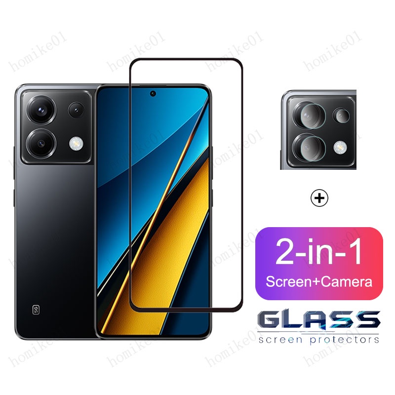 POCO F5 Película De Vidro Temperado Para Xiaomi POCO F5 Pro X3 NFC X4 GT M4 M3 X5 Pro 5G F3 C40 2 Em 1 Protetora De Tela De Cobertura Total Da Lente