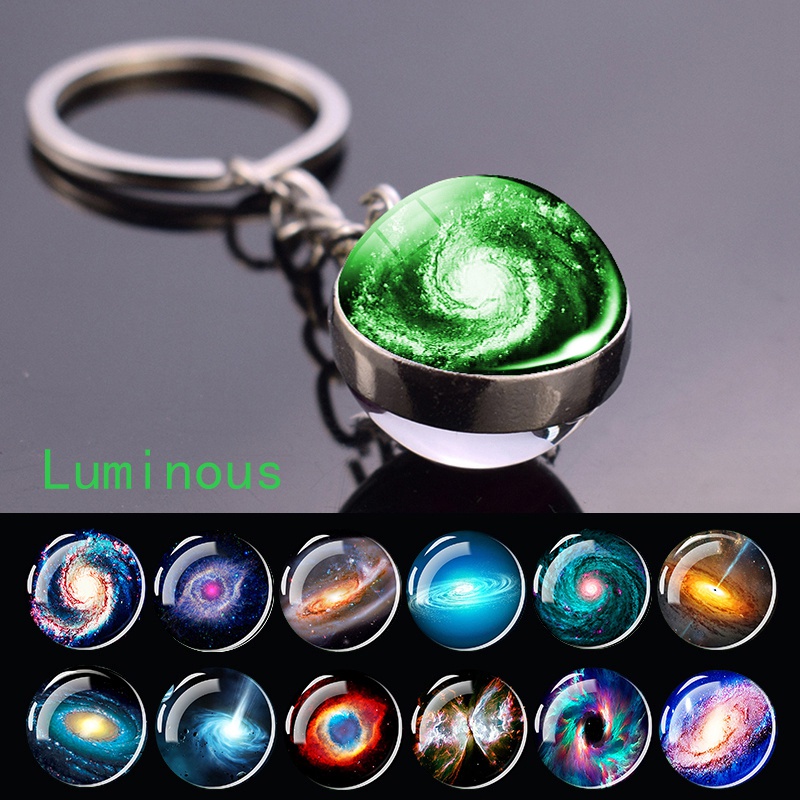 Brilham No Escuro Galaxy Nebulosa Espaço Planeta Pingente Chaveiro Universo Jóias Bola De Vidro Dupla Face Luminosa