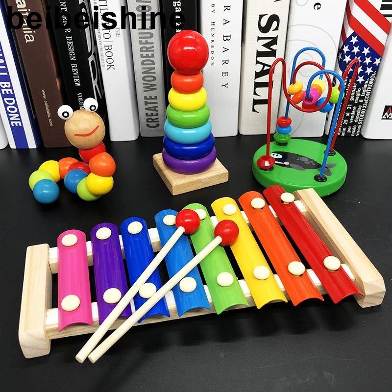 Crianças Mão Rotativa Brinquedo De Piano De Madeira Puzzle Do Bebê 1-2-3 Anos de Idade Oito Tons Xilofone