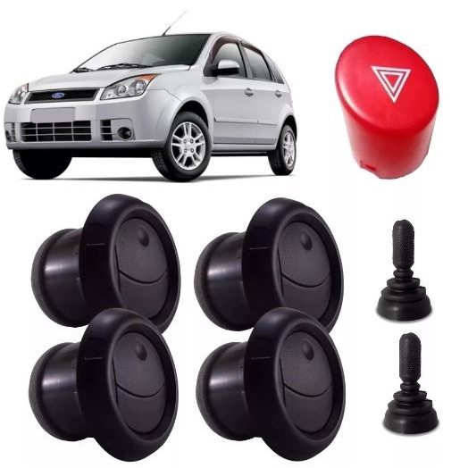 Kit Difusor De Ar Central Lateral Fiesta Lente do Pisca E Pino Preta