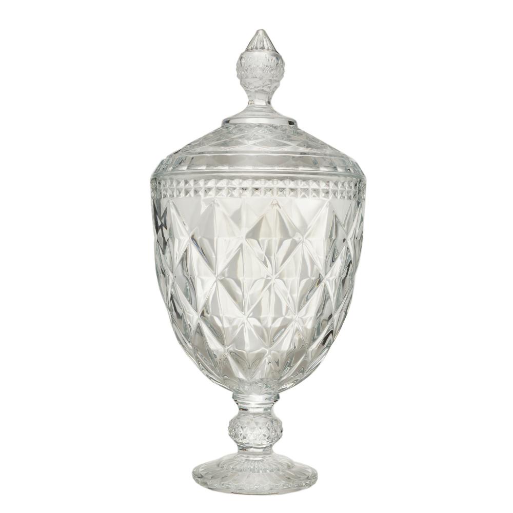 Potiche Decorativo C/Pé De Cristal Diamond 15X32Cm